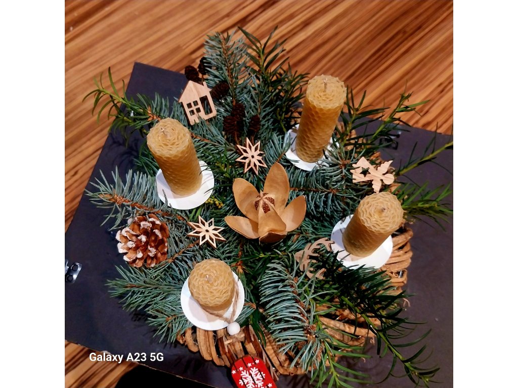 Přírodní advent.věnec se svíčkami od včeliček. Jistě udělá radost, pokud preferujete čistou přírodu domů na stůl:)