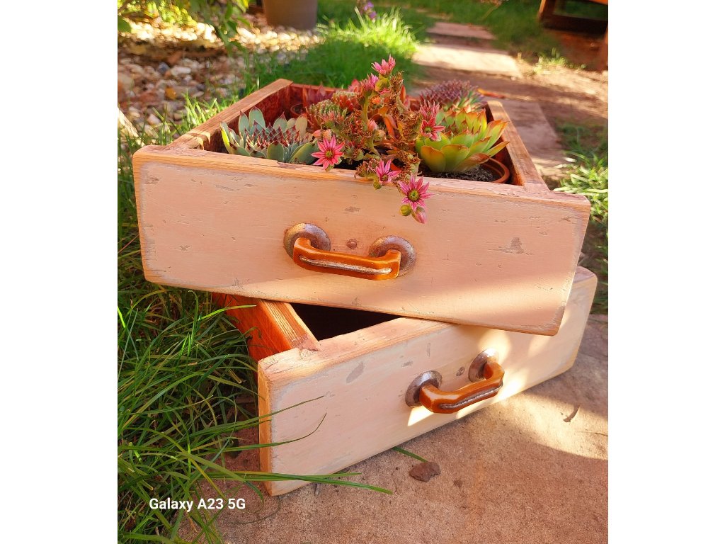 Pokud máte doma staré, dřevěné šuplíky, ráda Vám je zrenovuji a osázím tím, co sezóna nabízí. Je radostné dát starým věcem nový život.