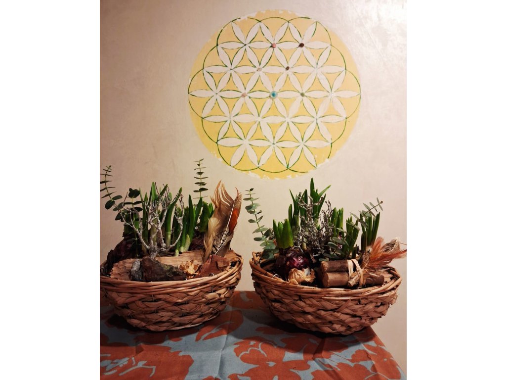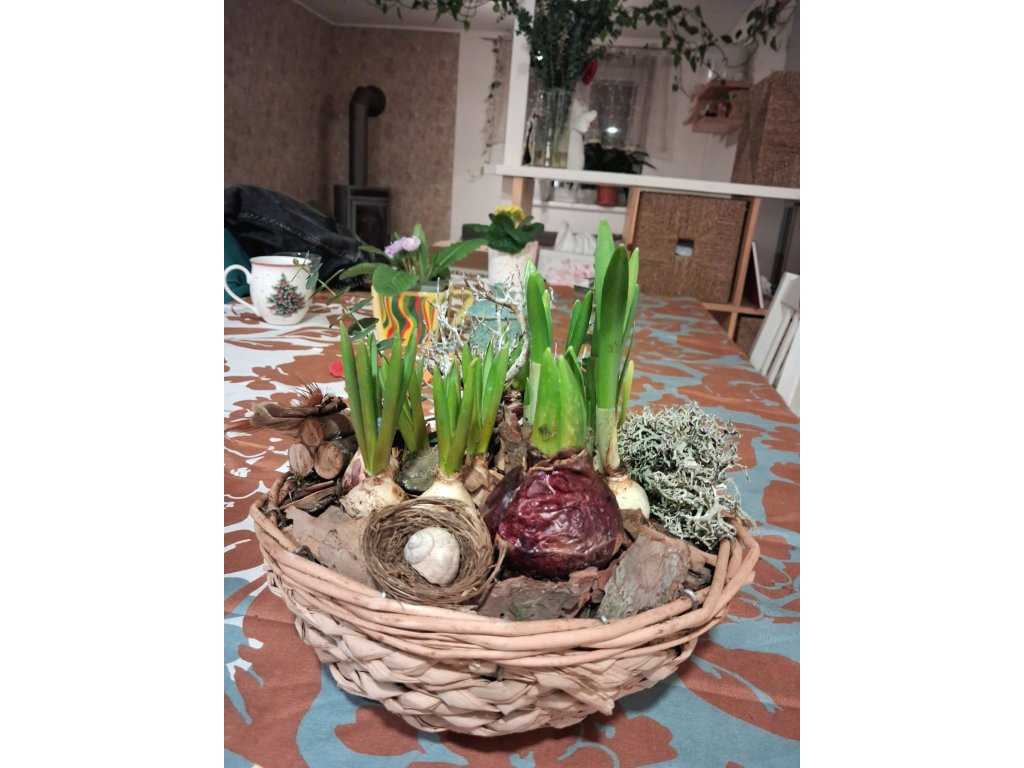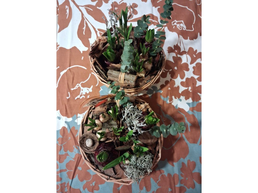 Tyhle přírodní košíky plné vůně z lesa s hyacinty, modřinci a narcisy Vám dodají radost a kousek přírody domů.